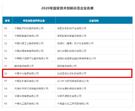 中化国际旗下安徽圣奥入选国家技术创新示范企业榜单