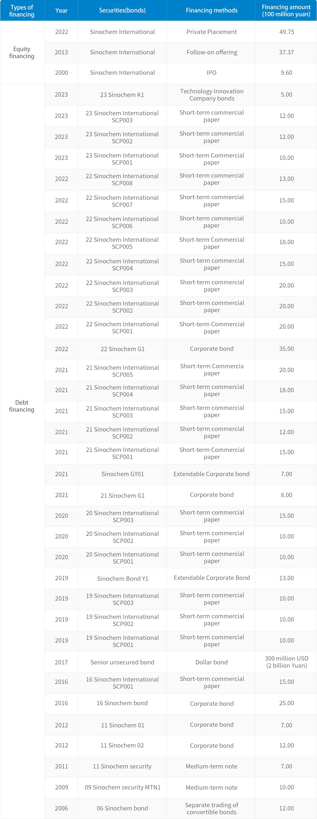 Currently, the company’s existing bonds are “21 Sinochem G1”, “Sinochem GY01”, “22 Sinochem G1” ,“23 Sinochem K1”bonds.